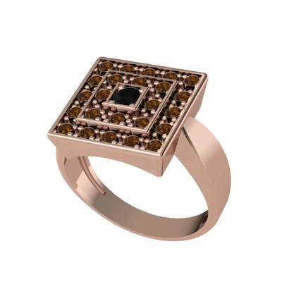 Siyah zirkon ve dumanlı kuvars 8 ayar rose altın yüzük