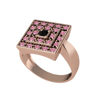 Siyah zirkon ve pembe kuvars 18 ayar rose altın yüzük