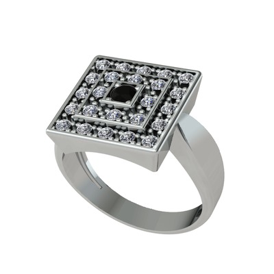 Siyah zirkon ve pırlanta 18 ayar beyaz altın yüzük (0.48 karat)