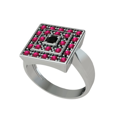 Siyah zirkon ve rodolit garnet 18 ayar beyaz altın yüzük