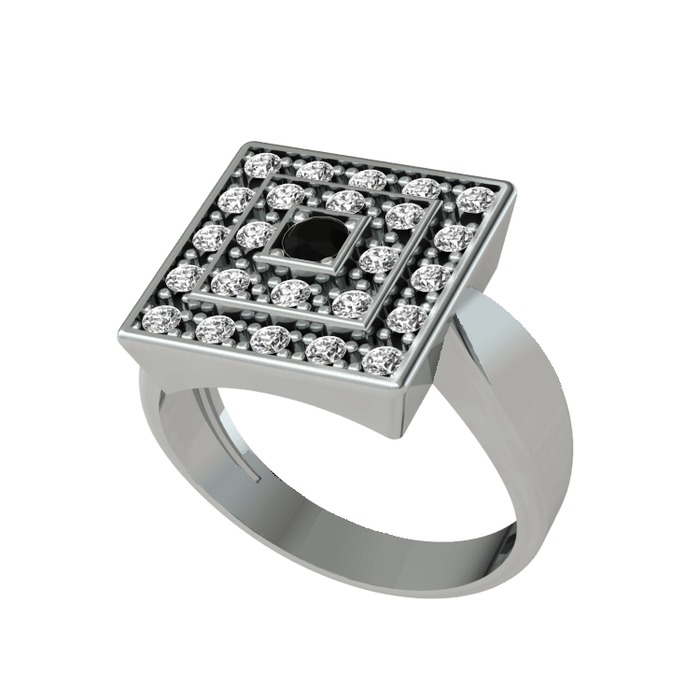 Siyah zirkon ve swarovski 14 ayar beyaz altın yüzük