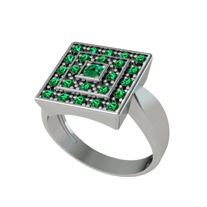 Yeşil kuvars 14 ayar beyaz altın yüzük