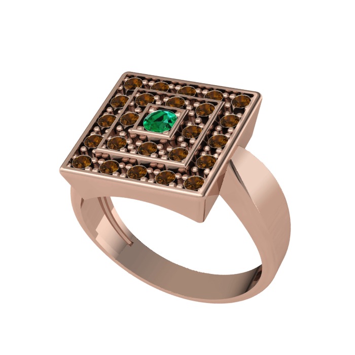 Yeşil kuvars ve dumanlı kuvars 14 ayar rose altın yüzük