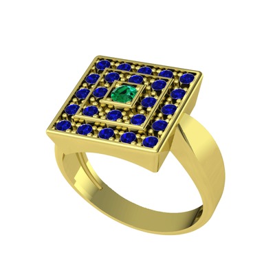 Yeşil kuvars ve lab safir 14 ayar altın yüzük