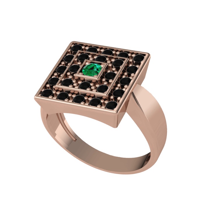 Yeşil kuvars ve siyah zirkon 8 ayar rose altın yüzük