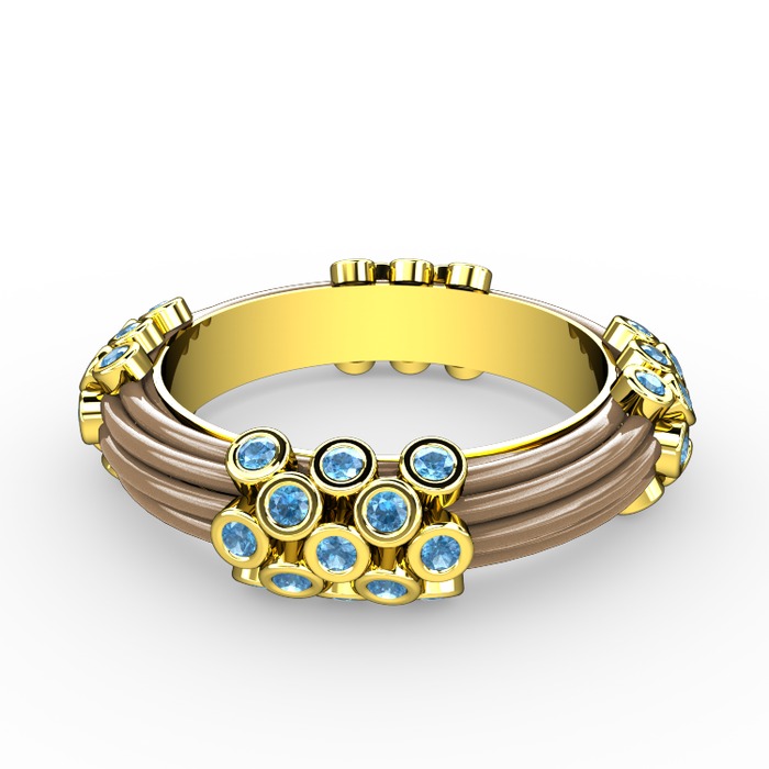 Akuamarin 14 ayar altın yüzük (Ekru mineli)