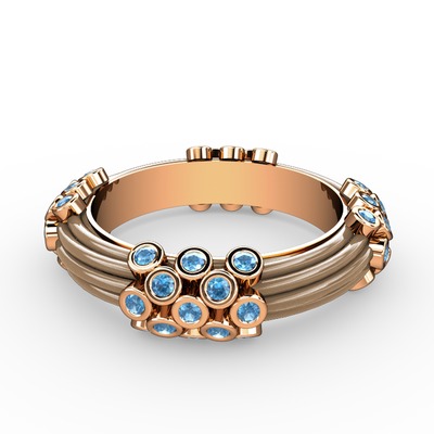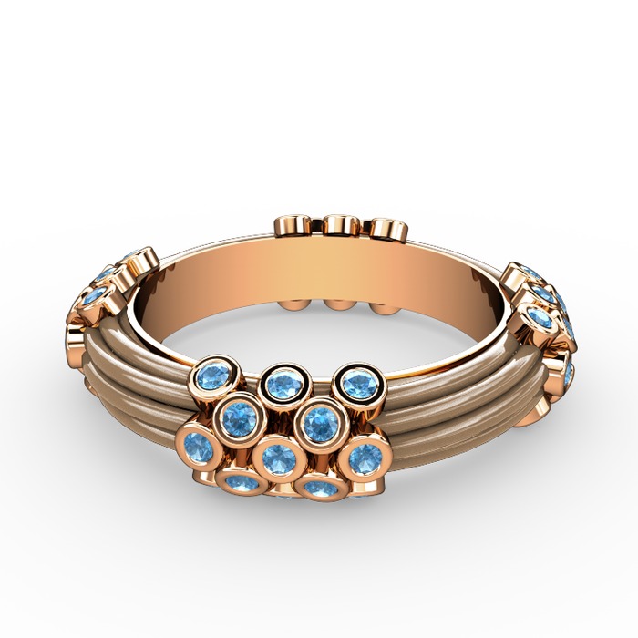 Akuamarin 18 ayar rose altın yüzük (Ekru mineli)