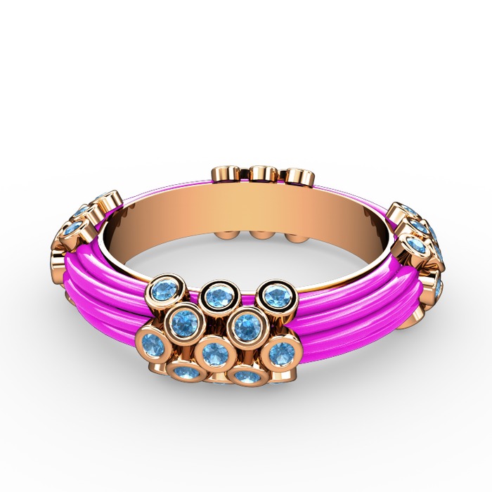 Akuamarin 18 ayar rose altın yüzük (Neon pembe mineli)