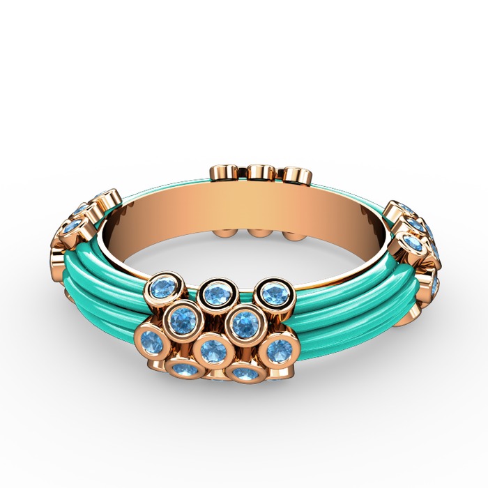 Akuamarin 925 ayar rose altın kaplama gümüş yüzük (Turkuaz mineli)