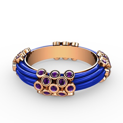 Ametist 925 ayar rose altın kaplama gümüş yüzük (Mavi mineli)