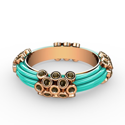 Dumanlı kuvars 14 ayar rose altın yüzük (Turkuaz mineli)