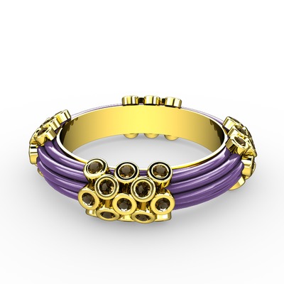 Dumanlı kuvars 18 ayar altın yüzük (Menekşe mineli)