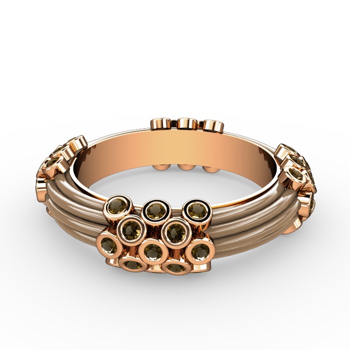 Dumanlı kuvars 925 ayar rose altın kaplama gümüş yüzük (Ekru mineli)