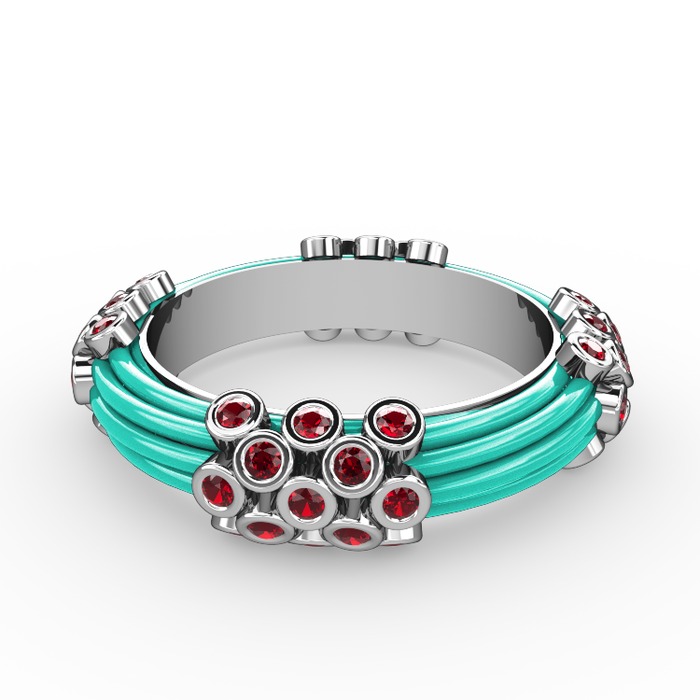Garnet 8 ayar beyaz altın yüzük (Turkuaz mineli)