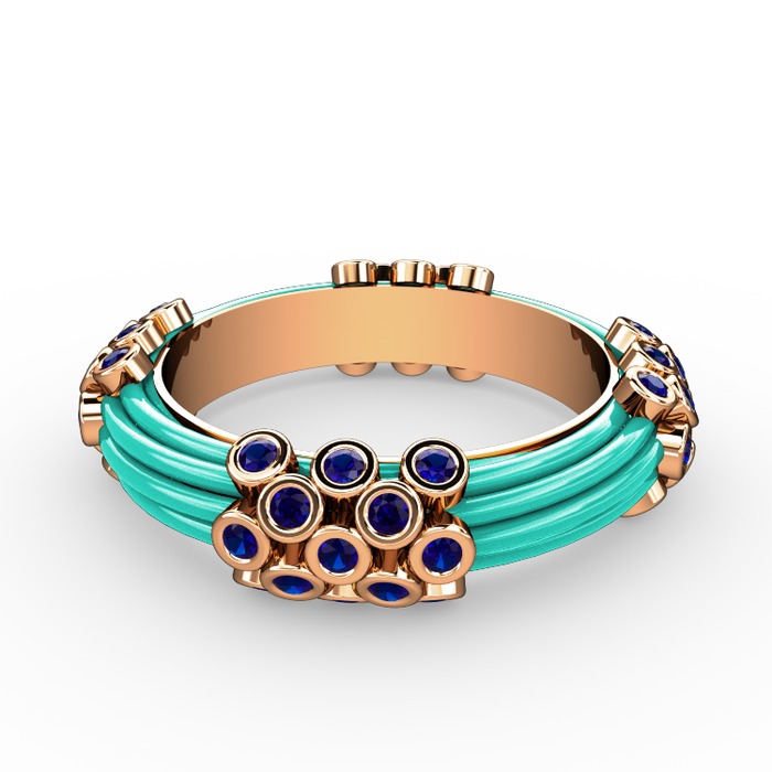 Lab safir 18 ayar rose altın yüzük (Turkuaz mineli)