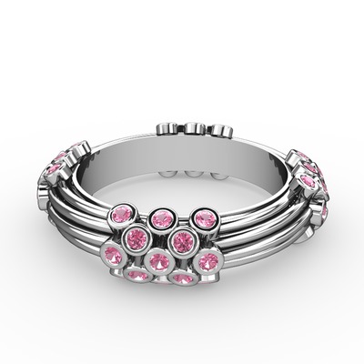 Pembe kuvars 14 ayar beyaz altın yüzük (şeffaf mineli)