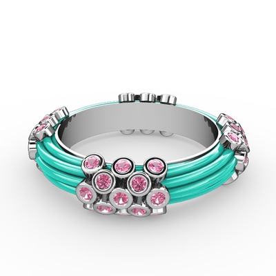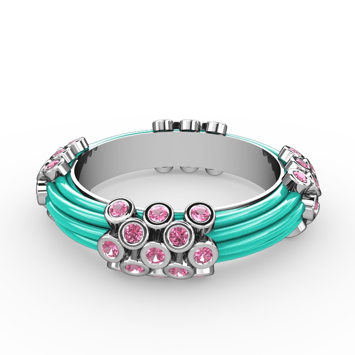 Pembe kuvars 14 ayar beyaz altın yüzük (Turkuaz mineli)