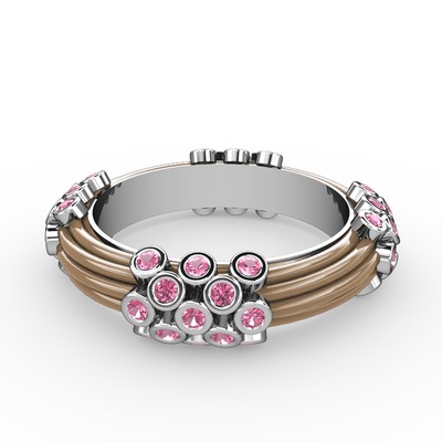Pembe kuvars 18 ayar beyaz altın yüzük (Ekru mineli)