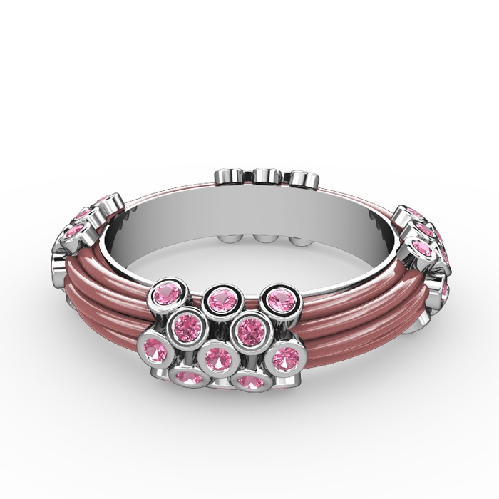 Pembe kuvars 8 ayar beyaz altın yüzük (Pastel pembe mineli)