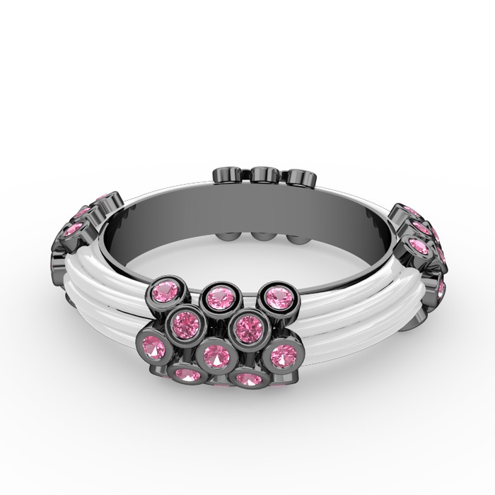 Pembe kuvars 925 ayar siyah rodyum kaplama gümüş yüzük (Beyaz mineli)