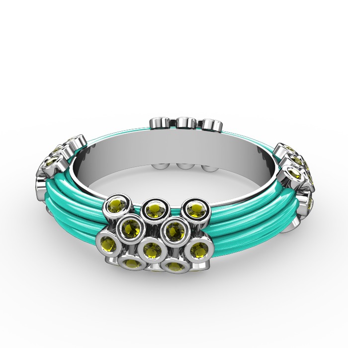 Peridot 14 ayar beyaz altın yüzük (Turkuaz mineli)