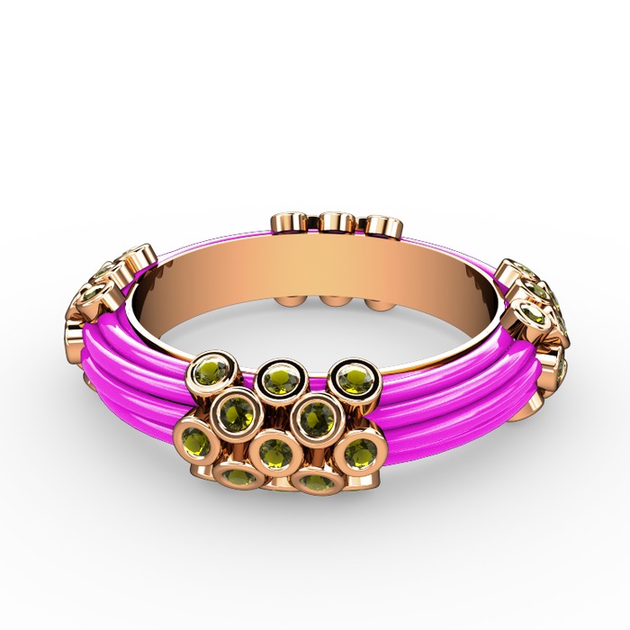 Peridot 14 ayar rose altın yüzük (Neon pembe mineli)