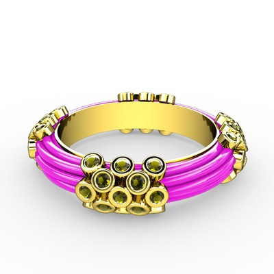 Peridot 925 ayar altın kaplama gümüş yüzük (Neon pembe mineli)
