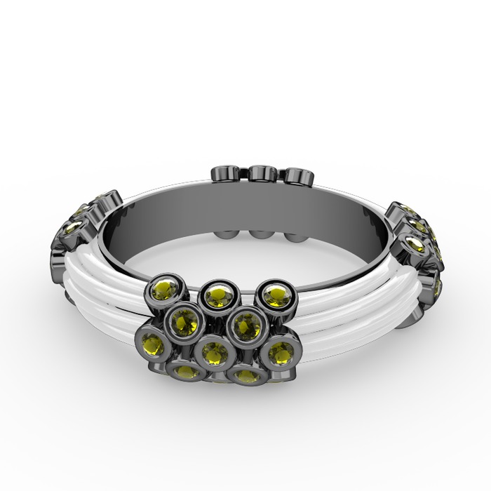 Peridot 925 ayar siyah rodyum kaplama gümüş yüzük (Beyaz mineli)