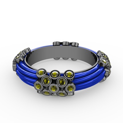 Peridot 925 ayar siyah rodyum kaplama gümüş yüzük (Mavi mineli)