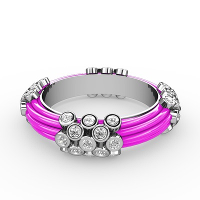 Pırlanta 14 ayar beyaz altın yüzük (0.78 karat, neon pembe mineli)