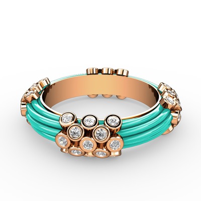 Pırlanta 925 ayar rose altın kaplama gümüş yüzük (0.78 karat, turkuaz mineli)