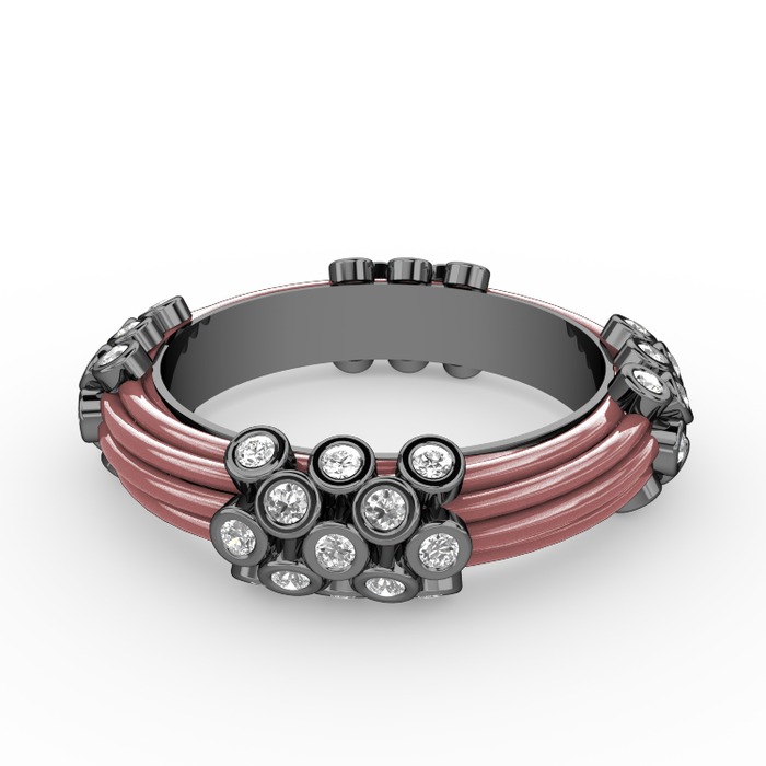 Pırlanta 925 ayar siyah rodyum kaplama gümüş yüzük (0.78 karat, pastel pembe mineli)