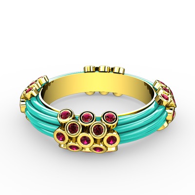 Rodolit garnet 14 ayar altın yüzük (Turkuaz mineli)
