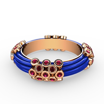 Rodolit garnet 18 ayar rose altın yüzük (Mavi mineli)
