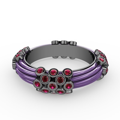 Rodolit garnet 925 ayar siyah rodyum kaplama gümüş yüzük (Menekşe mineli)
