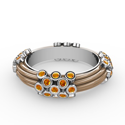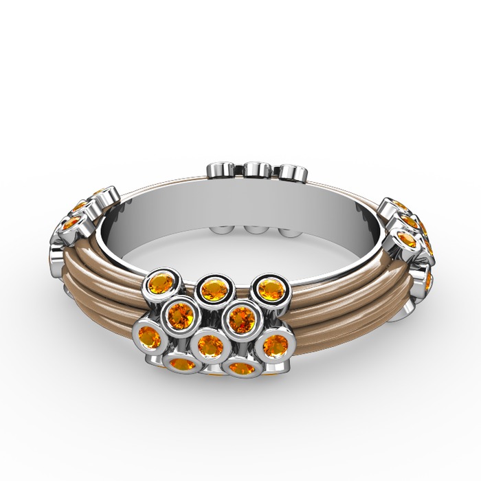 Sitrin 14 ayar beyaz altın yüzük (Ekru mineli)