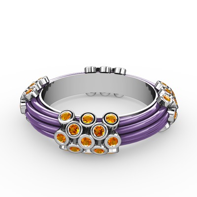 Sitrin 14 ayar beyaz altın yüzük (Menekşe mineli)