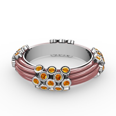 Sitrin 8 ayar beyaz altın yüzük (Pastel pembe mineli)