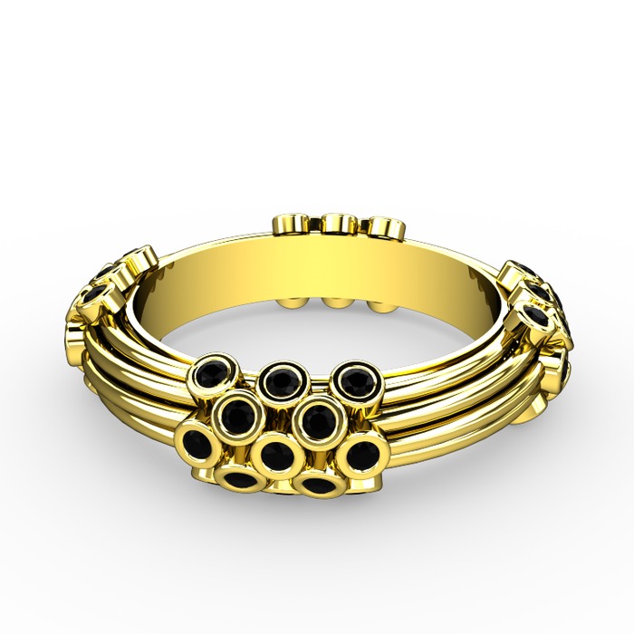 Siyah zirkon 14 ayar altın yüzük (şeffaf mineli)