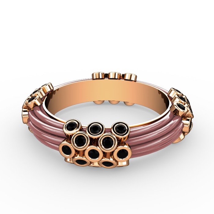 Siyah zirkon 14 ayar rose altın yüzük (Pastel pembe mineli)