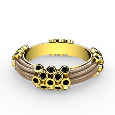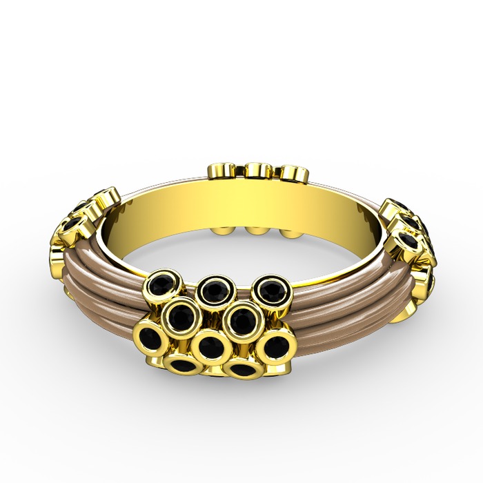Siyah zirkon 8 ayar altın yüzük (Ekru mineli)