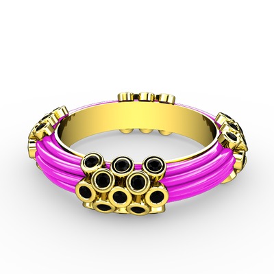 Siyah zirkon 8 ayar altın yüzük (Neon pembe mineli)