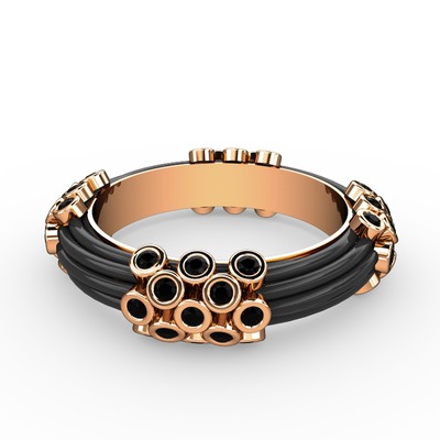 Siyah zirkon 8 ayar rose altın yüzük (Siyah mineli)