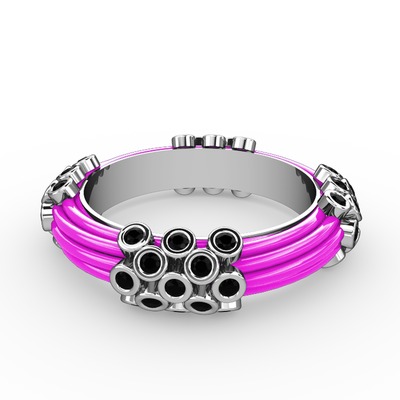 Siyah zirkon 925 ayar gümüş yüzük (Neon pembe mineli)