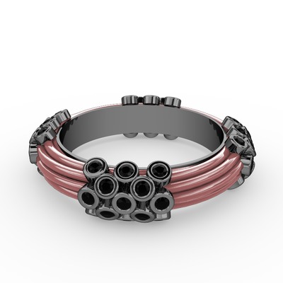 Siyah zirkon 925 ayar siyah rodyum kaplama gümüş yüzük (Pastel pembe mineli)