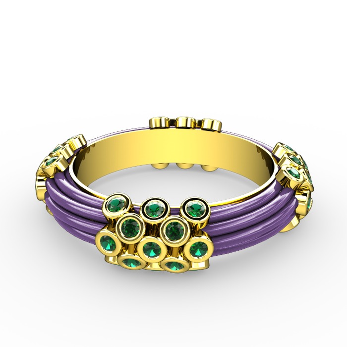 Yeşil kuvars 14 ayar altın yüzük (Menekşe mineli)