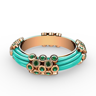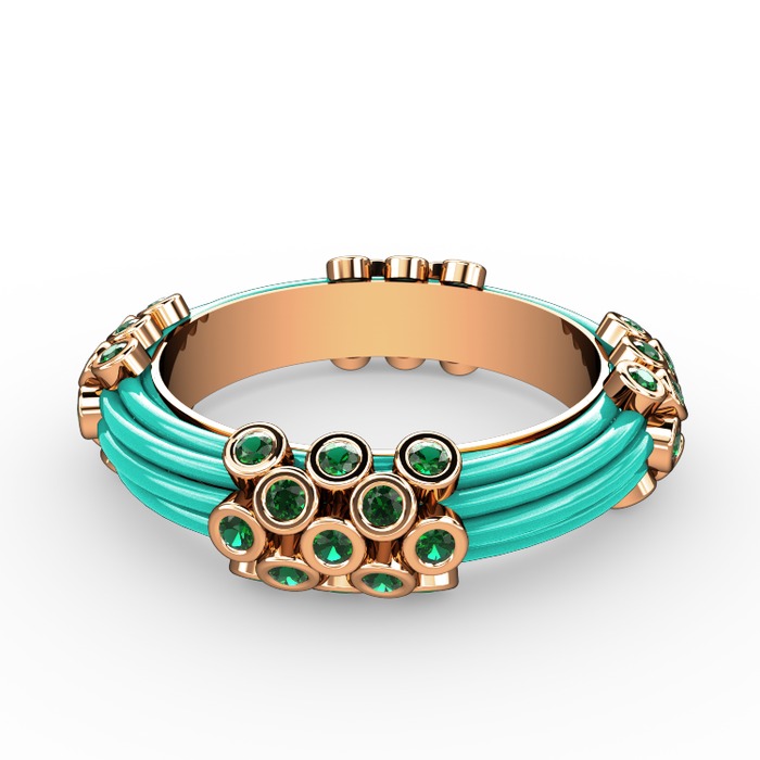 Yeşil kuvars 18 ayar rose altın yüzük (Turkuaz mineli)