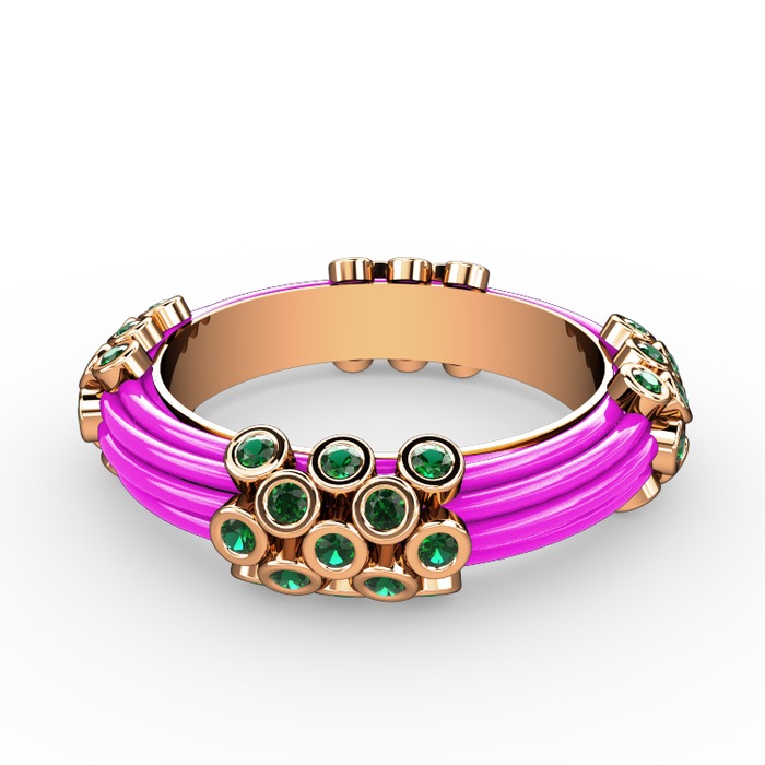 Yeşil kuvars 8 ayar rose altın yüzük (Neon pembe mineli)