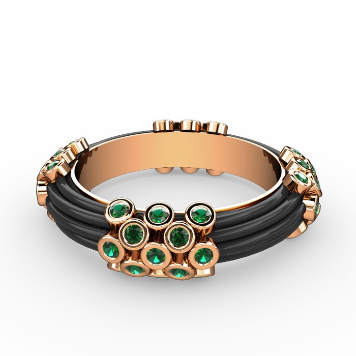 Yeşil kuvars 8 ayar rose altın yüzük (Siyah mineli)