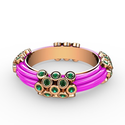 Yeşil kuvars 925 ayar rose altın kaplama gümüş yüzük (Neon pembe mineli)